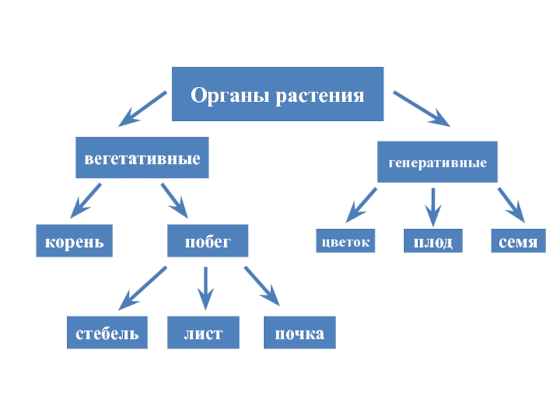Заполните схемуОрганы растениявегетативныегенеративныекореньпобегцветокплодсемястебельлистпочка