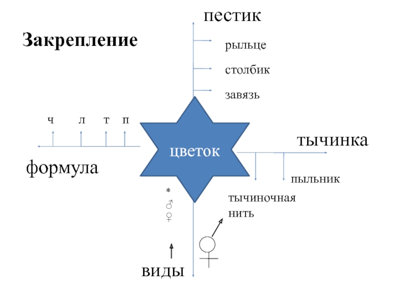 формулапестиктычинкавидыцветокрыльцестолбикзавязьтычиночнаянитьпыльникчлтп♂ ♀ *Закрепление