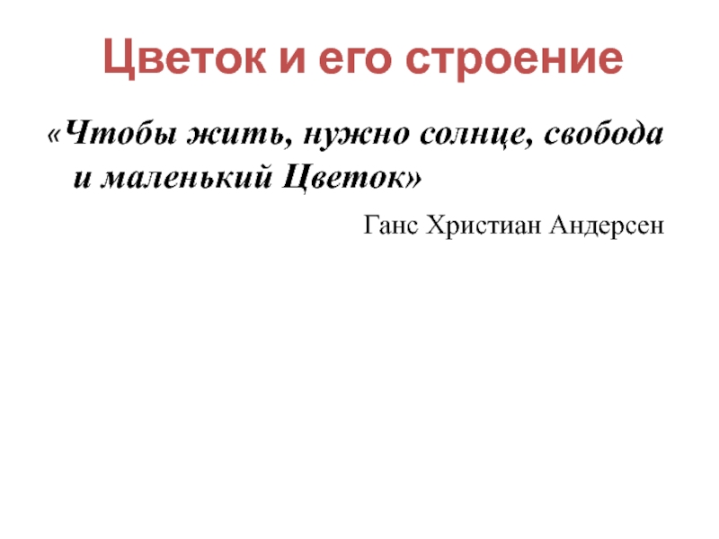 Цветок и его строение «Чтобы жить, нужно солнце, свобода и маленький Цветок»                                           Ганс Христиан Андерсен