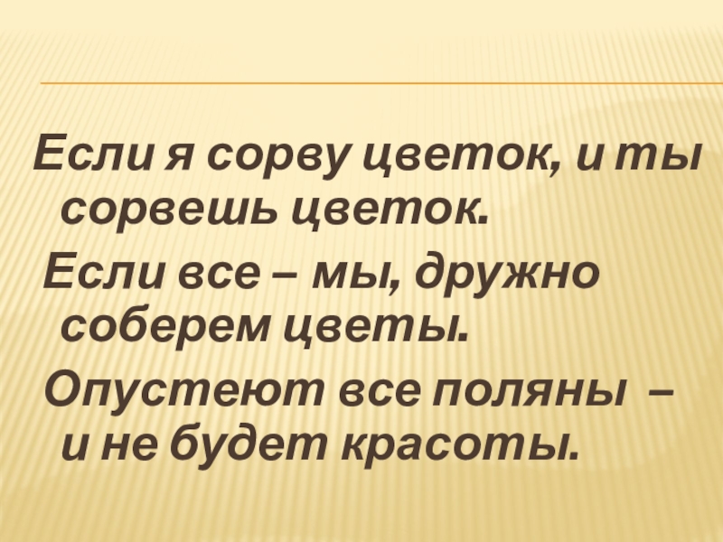 Если я сорву цветок, и ты сорвешь цветок. Если все – мы, дружно соберем цветы. Опустеют все