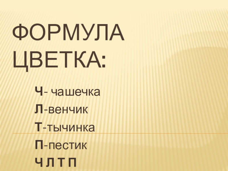 Формула цветка: Ч- чашечкаЛ-венчикТ-тычинкаП-пестикЧ Л Т П