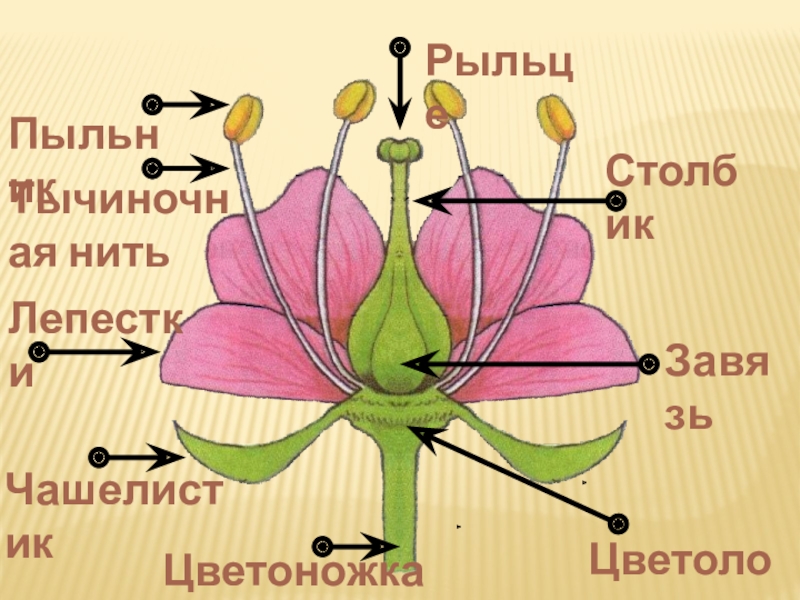 Цель:Изучить морфологию цветка и выяснить значение его в природе.Задачи: 1.Активизировать знания о многообразии цветковых растений, способствовать усвоению знаний о строении цветка. 2.Создать условия для развития умения соотносить названия частей цветка с изображением, развивать концентрацию