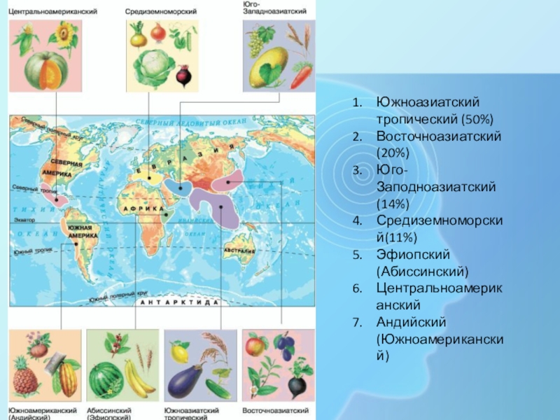 Установил центры происхождения растений: Центральноамериканский центр( Южная Мексика, Центральная Америка, острова Вест –Индии) , Давший кукурузу, фасоль ,хлопчатник упланд, овощной перец и др.