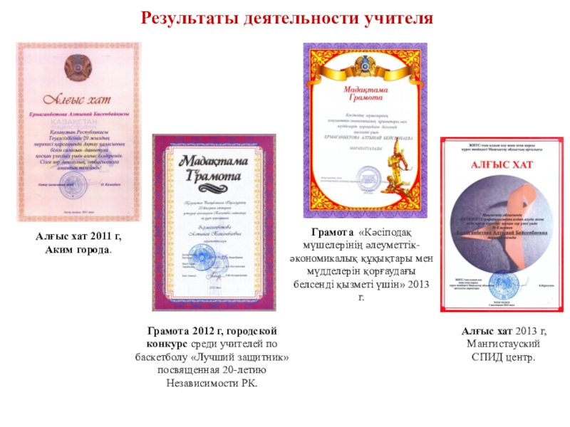Грамота 2012 г, городской конкурс среди учителей по баскетболу «Лучший защитник» посвященная 20-летию Независимости РК.