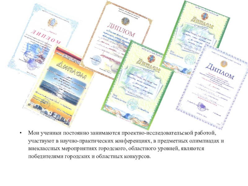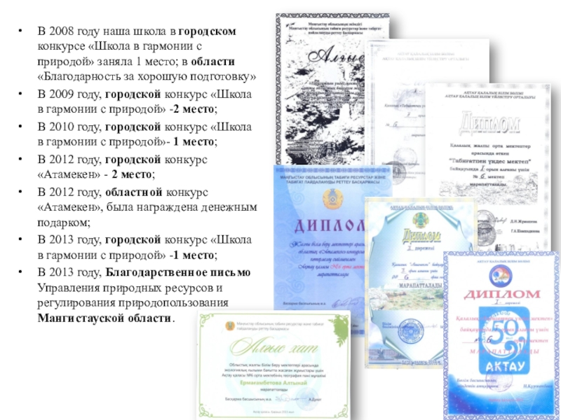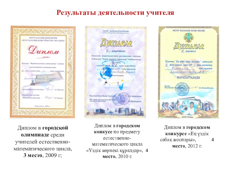 Диплом в городском конкурсе «Ең үздік сабақ жоспары», 4 место, 2012 г.