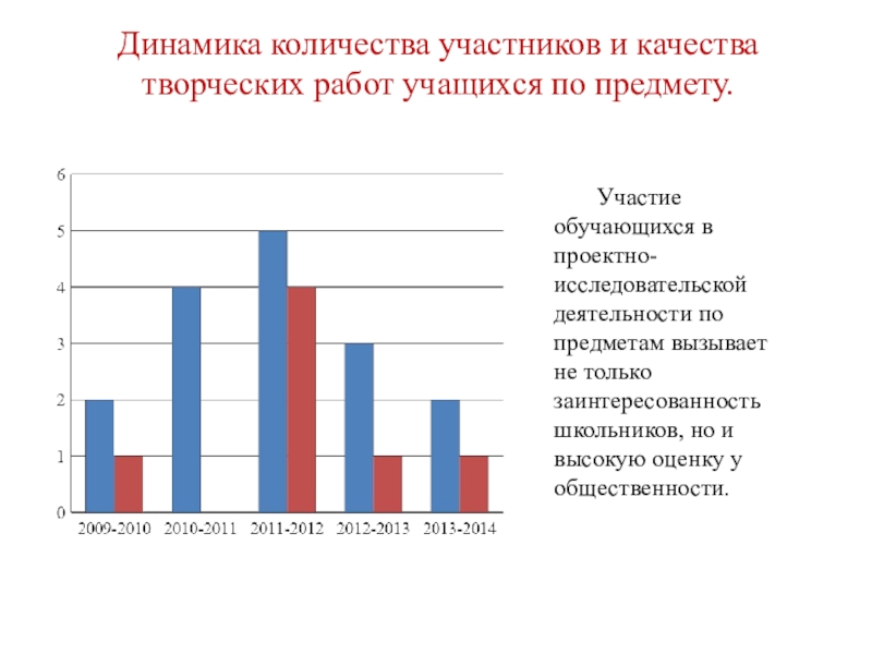 Динамика количества участников и качества творческих работ учащихся по предмету.