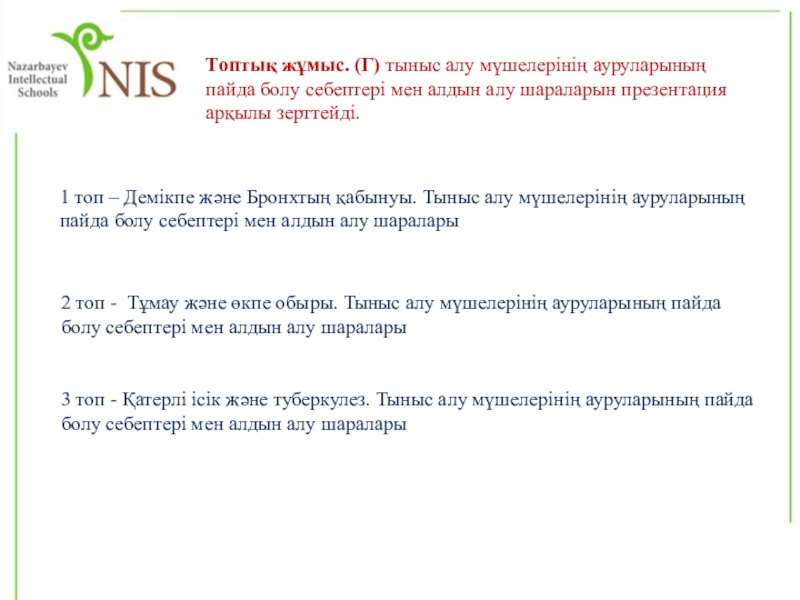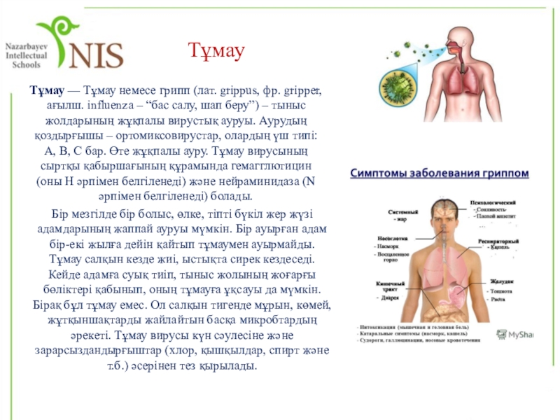 2 топ - Тұмау және өкпе обыры. Тыныс алу мүшелерінің ауруларының пайда болу себептері мен алдын алу шаралары