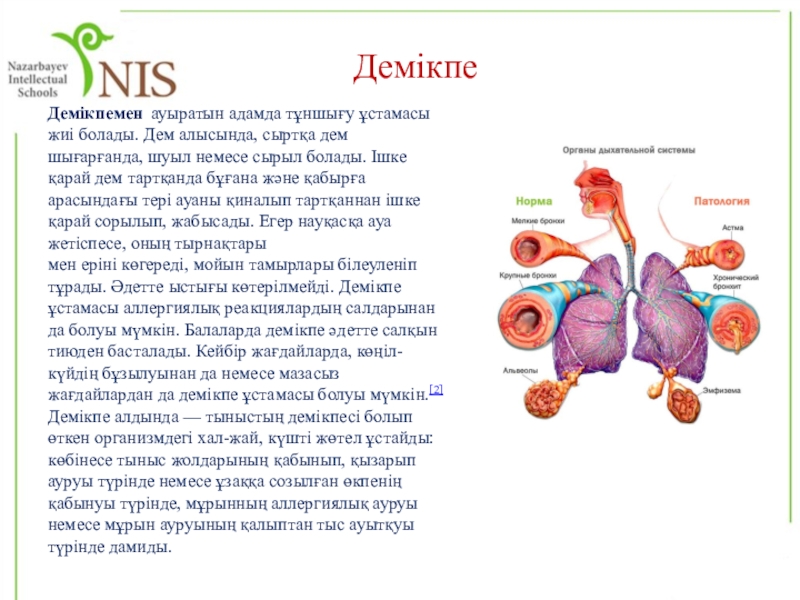 1 топ – Демікпе және Бронхтың қабынуы. Тыныс алу мүшелерінің ауруларының пайда болу себептері мен алдын алу шаралары
