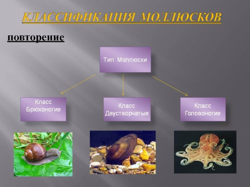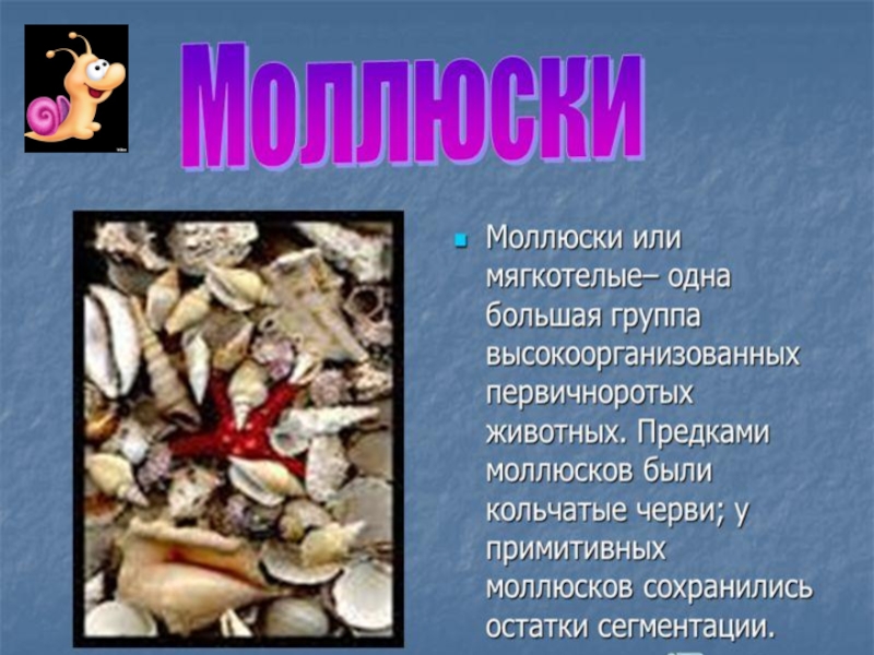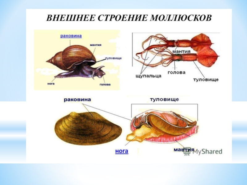 Презентация, доклад на тему Учебная презентация по теме Тип Моллюски, или Мягкотелые