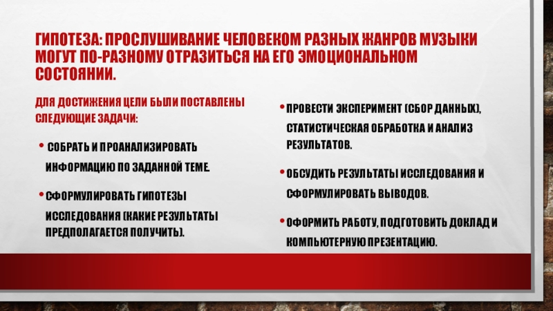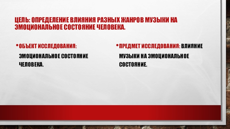 Предмет исследования: влияние музыки на эмоциональное состояние.