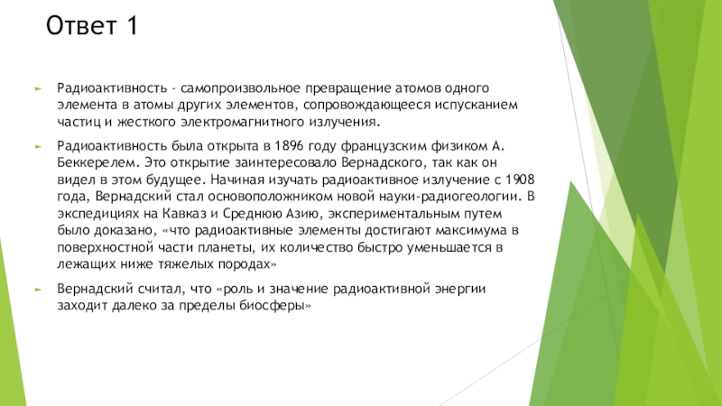 Вернадский считал, что «роль и значение радиоактивной энергии заходит далеко за пределы биосферы»