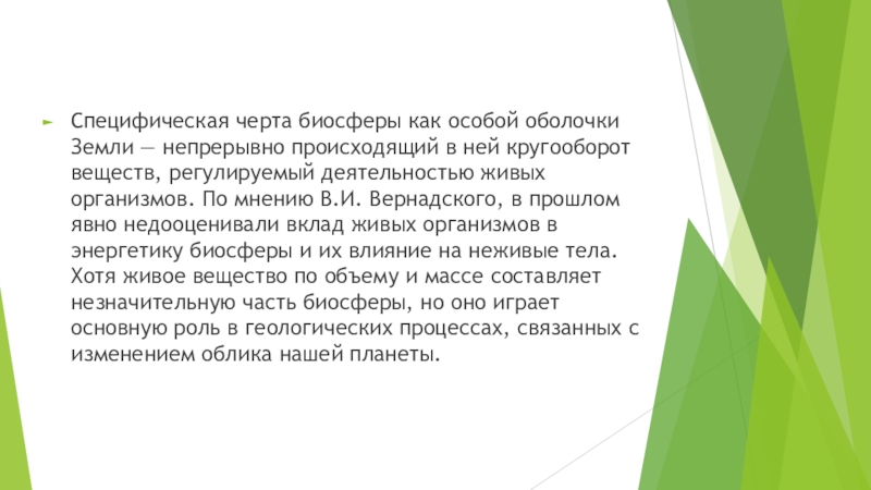 Слайд 8Специфическая черта биосферы как особой оболочки Земли — непрерывно происходящий в
