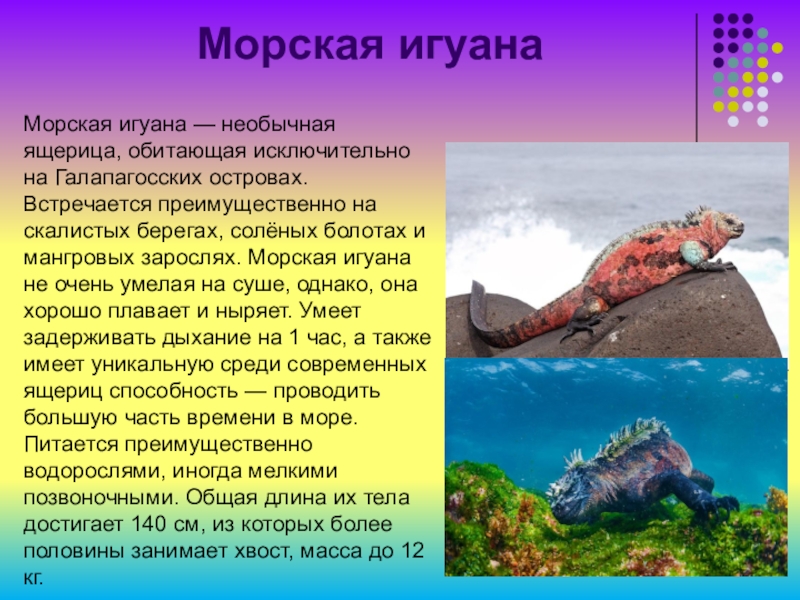 Морская игуана — необычная ящерица, обитающая исключительно на Галапагосских островах.