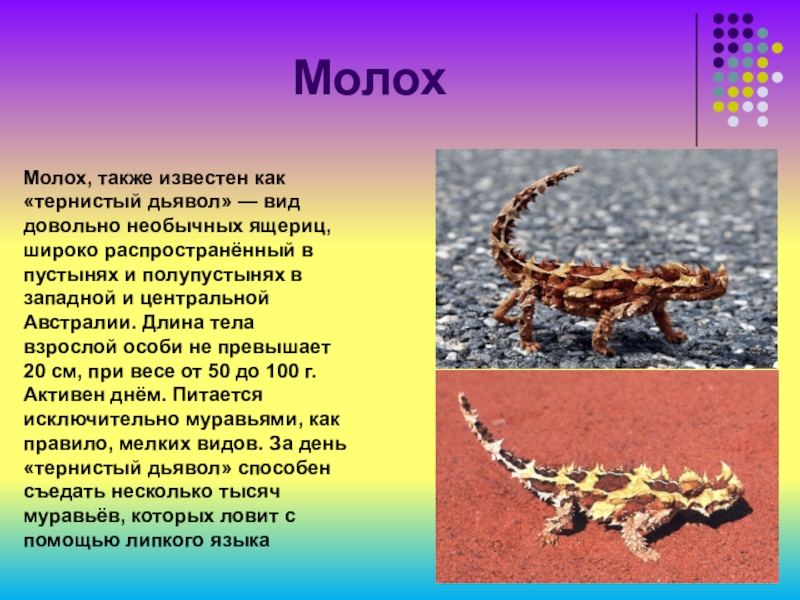Молох, также известен как «тернистый дьявол» — вид довольно необычных ящериц,