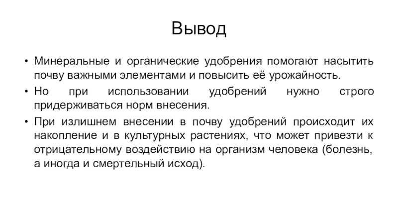 ВыводМинеральные и органические удобрения помогают насытить почву важными элементами и повысить её урожайность. Но при использовании удобрений