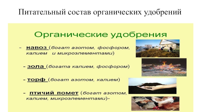 Питательный состав органических удобрений