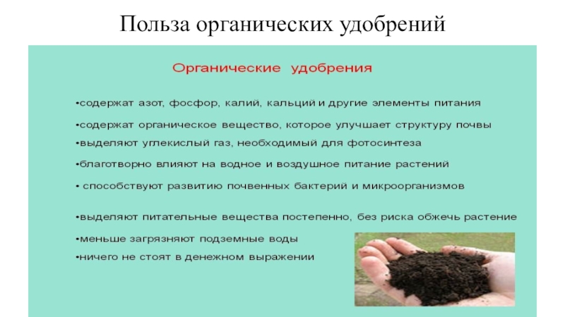 Слайд 8Польза органических удобрений