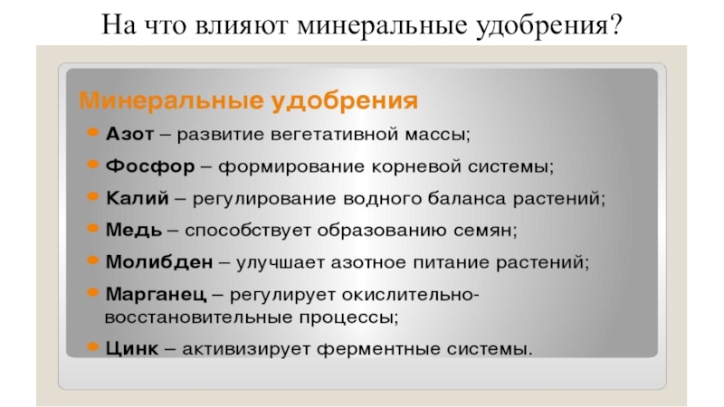 Слайд 4На что влияют минеральные удобрения?