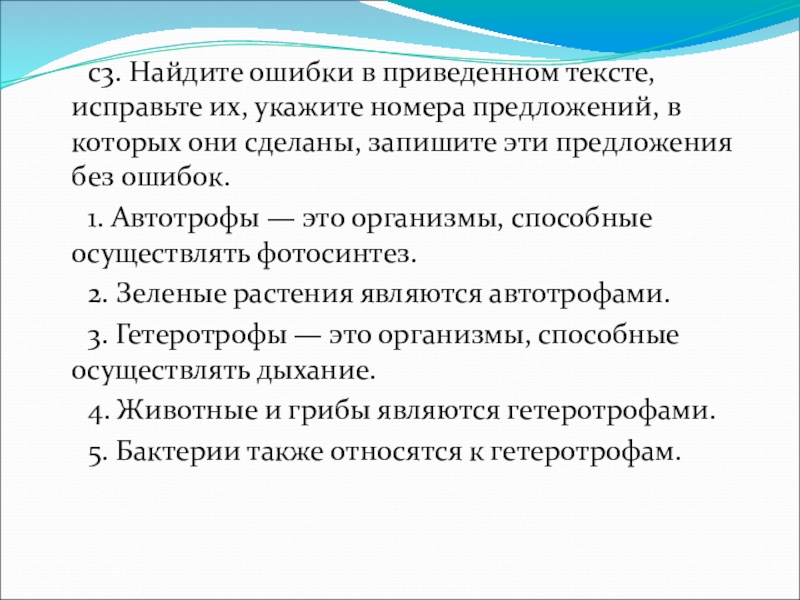 Слайд 21 с3. Найдите ошибки в приведенном тексте, исправьте их, укажите номера