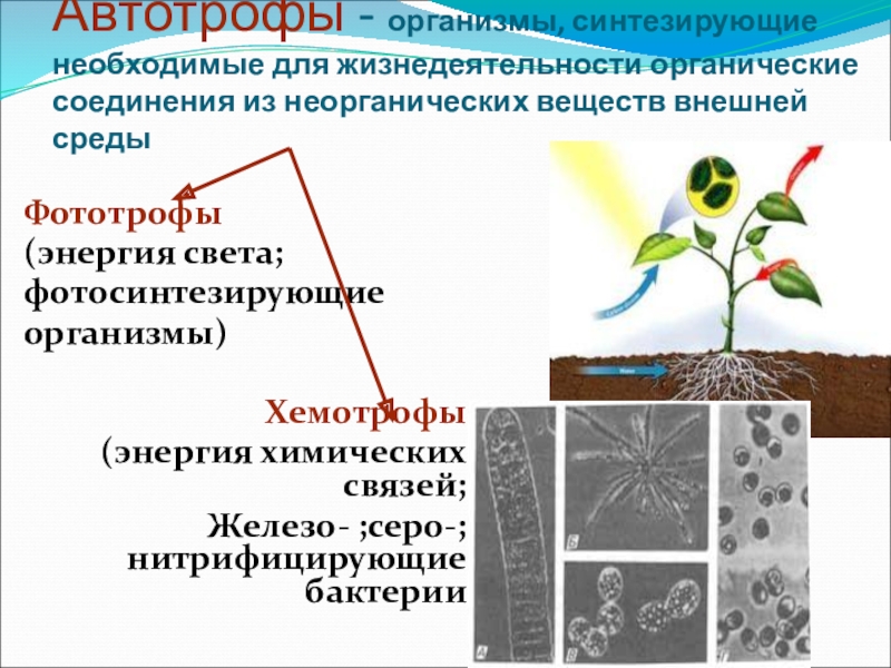 Слайд 6Автотрофы - организмы, синтезирующие необходимые для жизнедеятельности органические соединения из неорганических