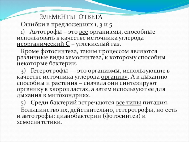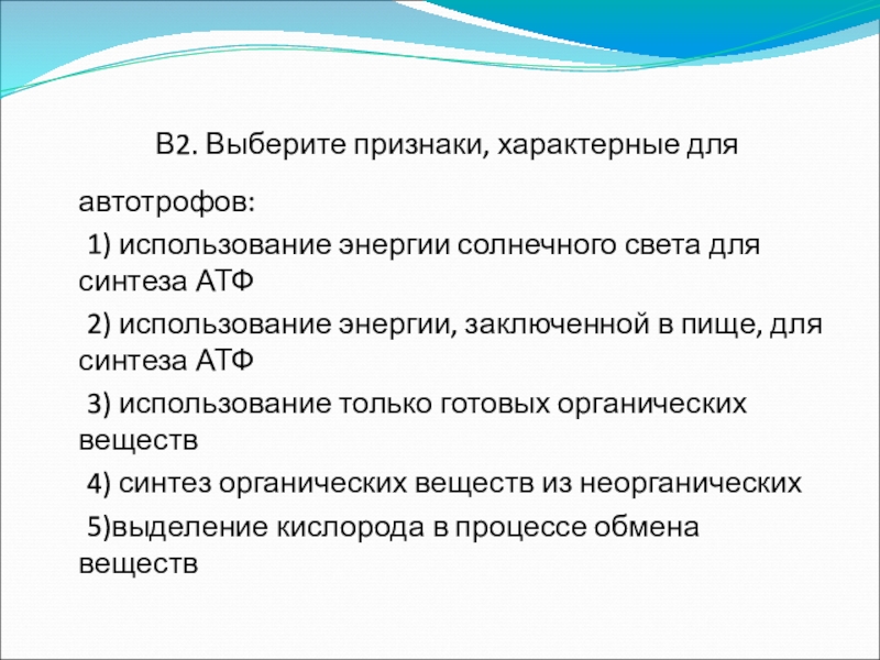 Слайд 5 В2. Выберите признаки, характерные для автотрофов: