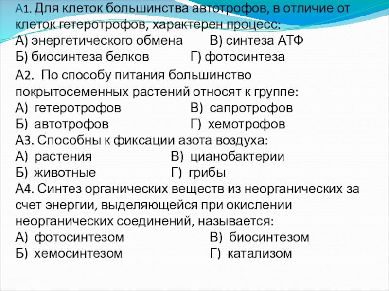 А1. Для клеток большинства автотрофов, в отличие от клеток гетеротрофов, характерен