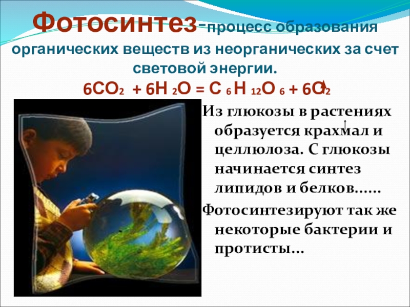 Слайд 9Фотосинтез-процесс образования органических веществ из неорганических за счет световой энергии.
