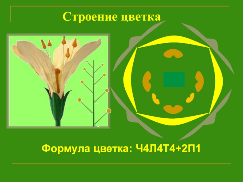 Строение цветка Формула цветка: Ч4Л4Т4+2П1