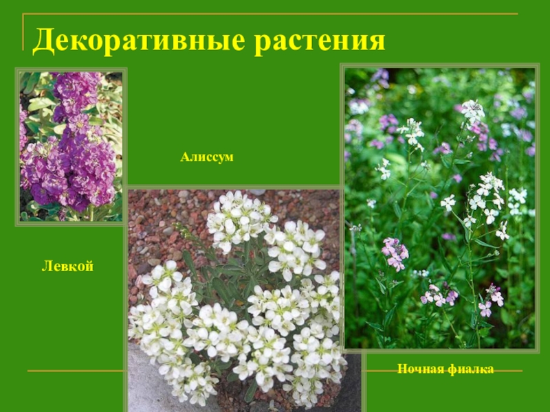 Декоративные растения ЛевкойАлиссумНочная фиалка
