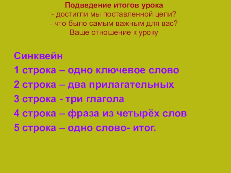 5 строка – одно слово- итог.