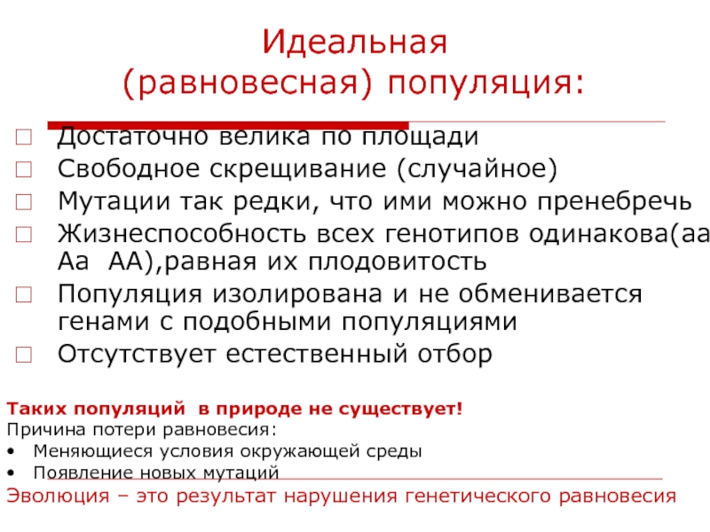 Эволюция – это результат нарушения генетического равновесия