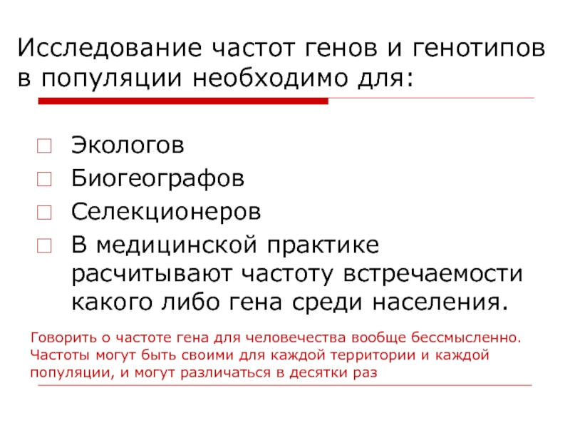 Говорить о частоте гена для человечества вообще бессмысленно. Частоты могут быть своими для каждой территории и каждой популяции, и могут различаться в десятки раз