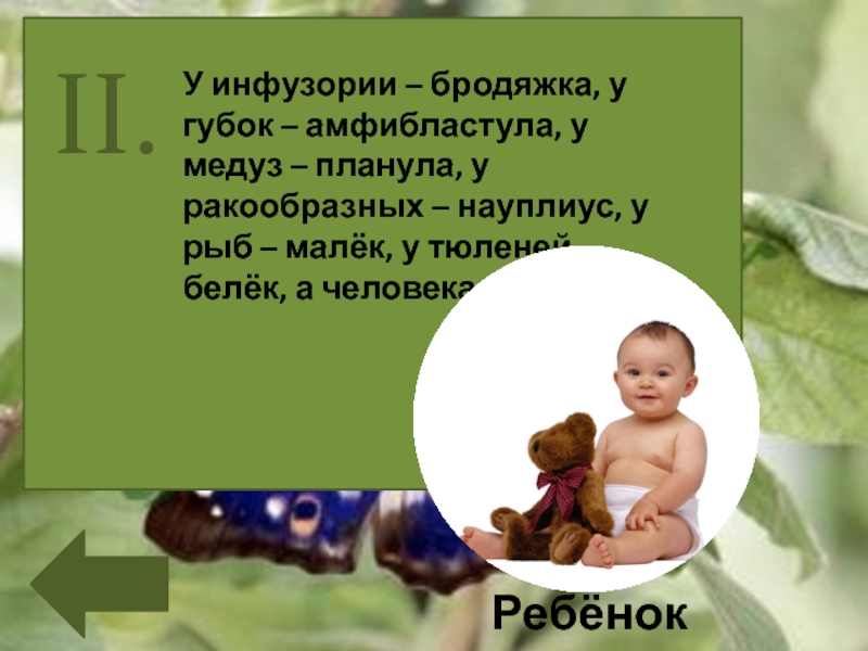 планула, у ракообразных – науплиус, у рыб – малёк, у тюленей – белёк, а человека - ?