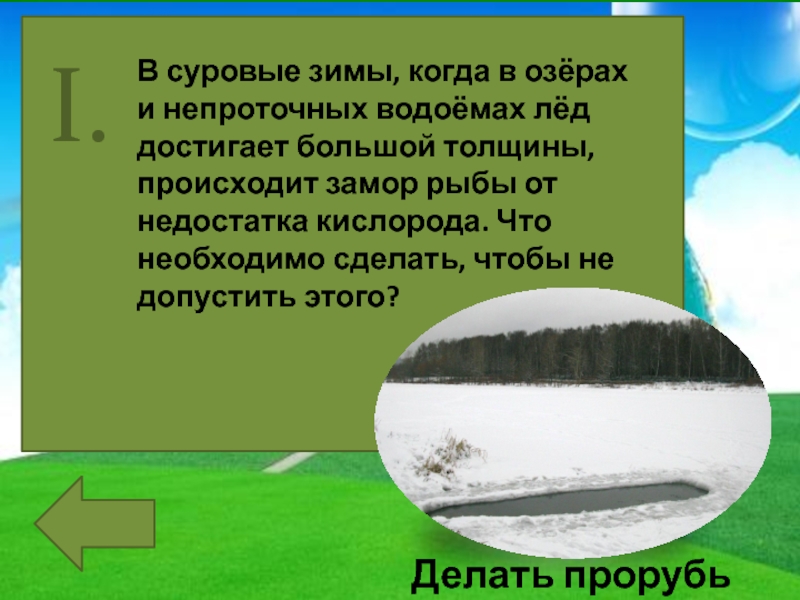 Слайд 39В суровые зимы, когда в озёрах и непроточных водоёмах лёд достигает