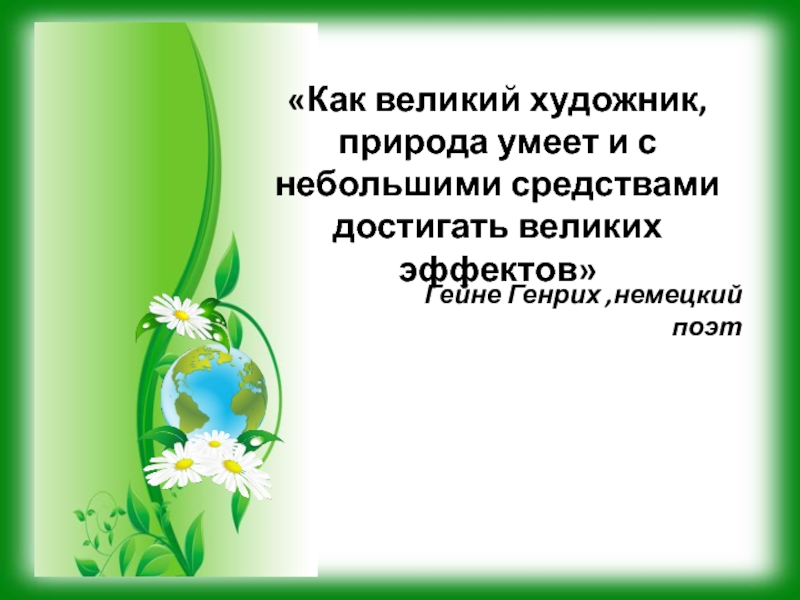 Слайд 28«Как великий художник, природа умеет и с небольшими средствами достигать великих