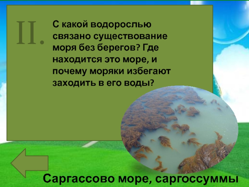 Слайд 40С какой водорослью связано существование моря без берегов? Где находится это