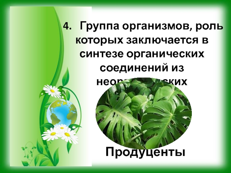 Слайд 74. Группа организмов, роль которых заключается в синтезе органических соединений
