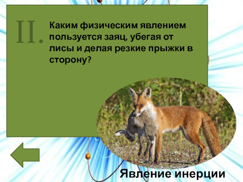 Слайд 45Каким физическим явлением пользуется заяц, убегая от лисы и делая резкие