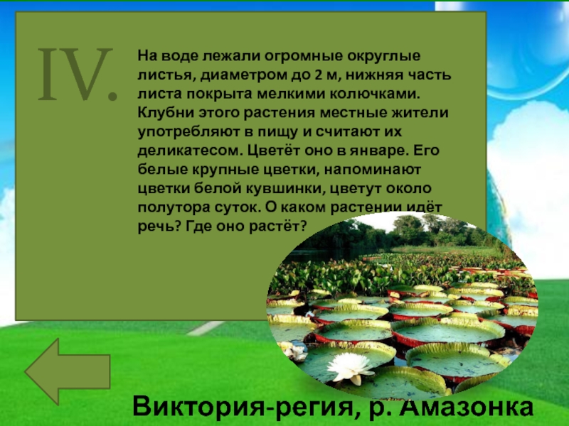Слайд 42На воде лежали огромные округлые листья, диаметром до 2 м, нижняя