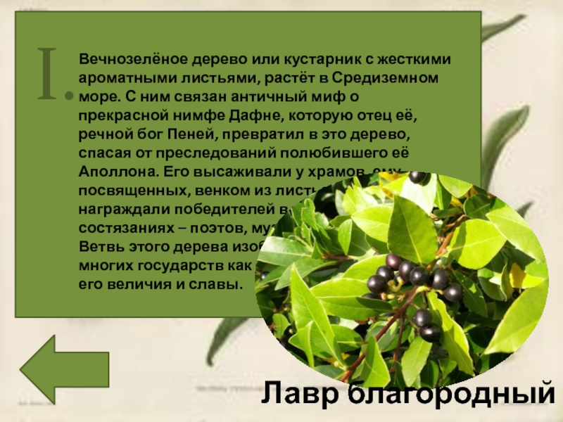 Слайд 29Вечнозелёное дерево или кустарник с жесткими ароматными листьями, растёт в Средиземном