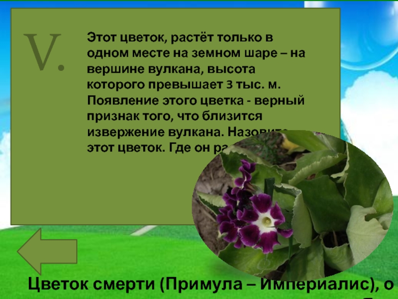 на вершине вулкана, высота которого превышает 3 тыс. м. Появление этого цветка - верный признак того, что близится извержение вулкана. Назовите этот цветок. Где он растёт?