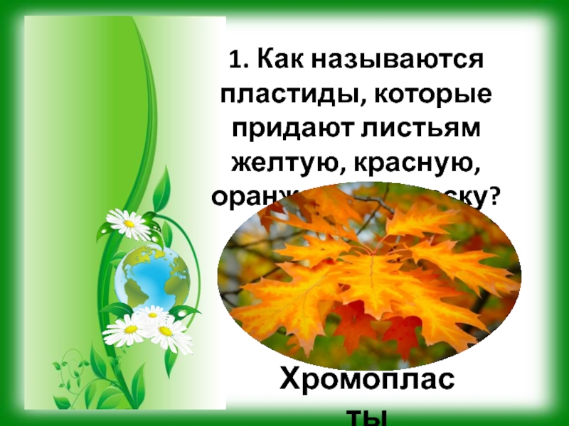 Слайд 41. Как называются пластиды, которые придают листьям желтую, красную, оранжевую окраску?
