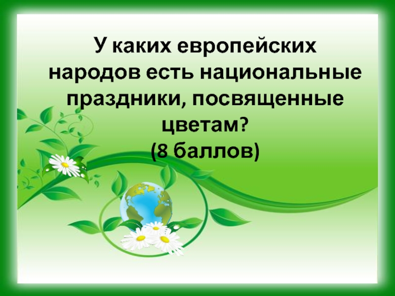 Слайд 24У каких европейских народов есть национальные праздники, посвященные цветам?
