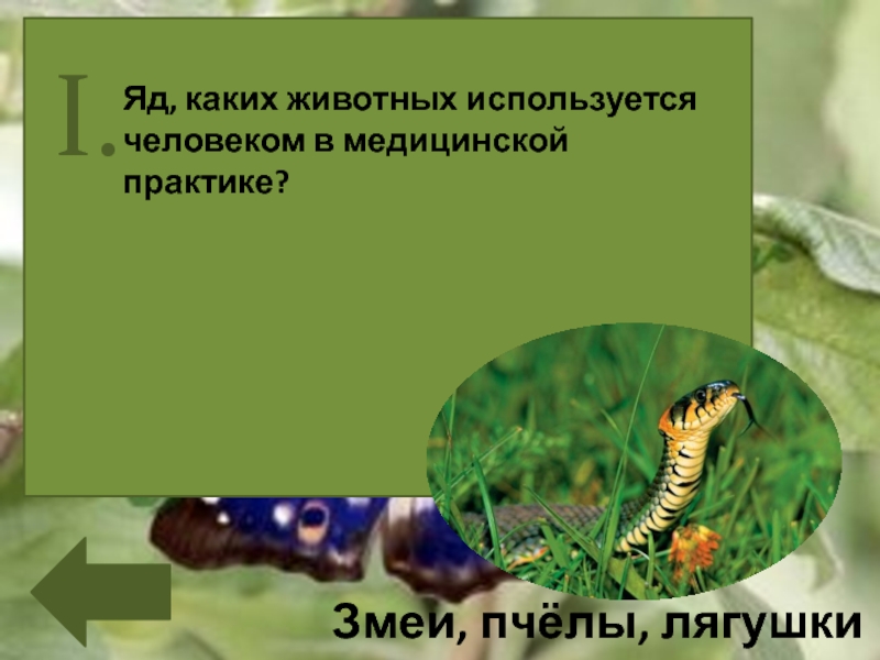 Слайд 34Яд, каких животных используется человеком в медицинской практике?
