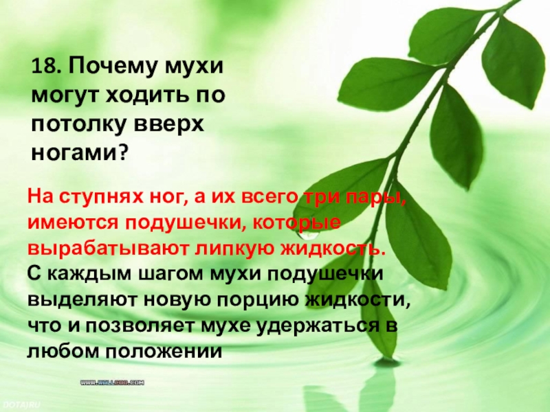 18. Почему мухи могут ходить по потолку вверх ногами?
