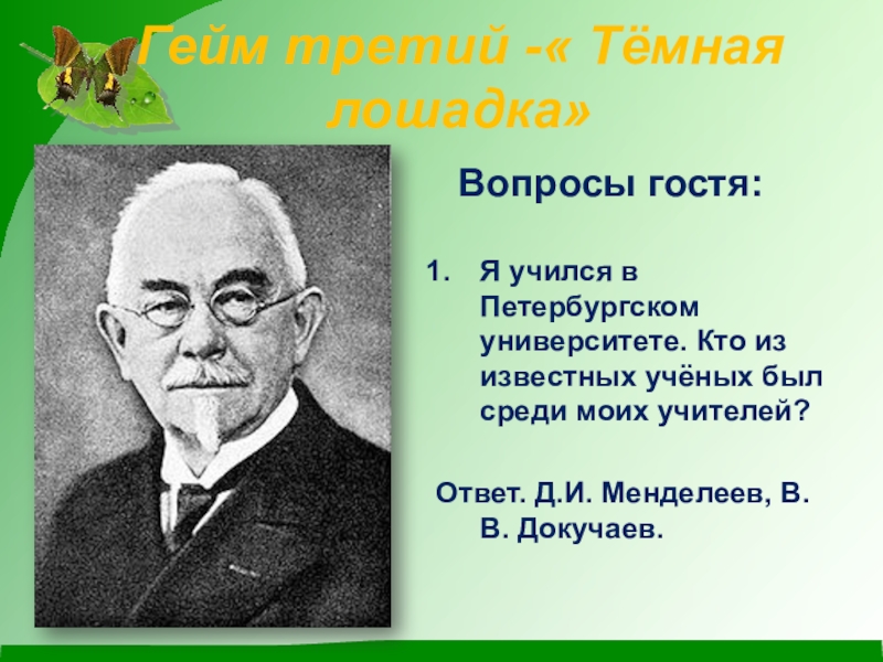 Ответ. Д.И. Менделеев, В.В. Докучаев.
