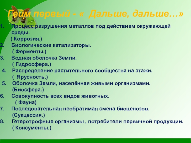 Слайд 6Гейм первый - « Дальше, дальше…»