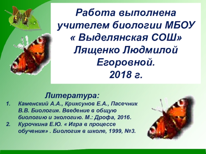 учителем биологии МБОУ « Выделянская СОШ»
