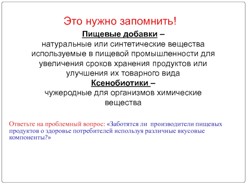 Ответьте на проблемный вопрос: «Заботятся ли производители пищевых продуктов о здоровье потребителей используя различные вкусовые компоненты?»