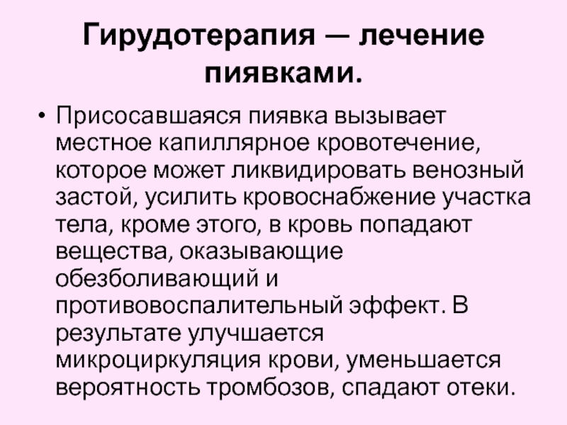 Слайд 16Гирудотерапия — лечение пиявками.